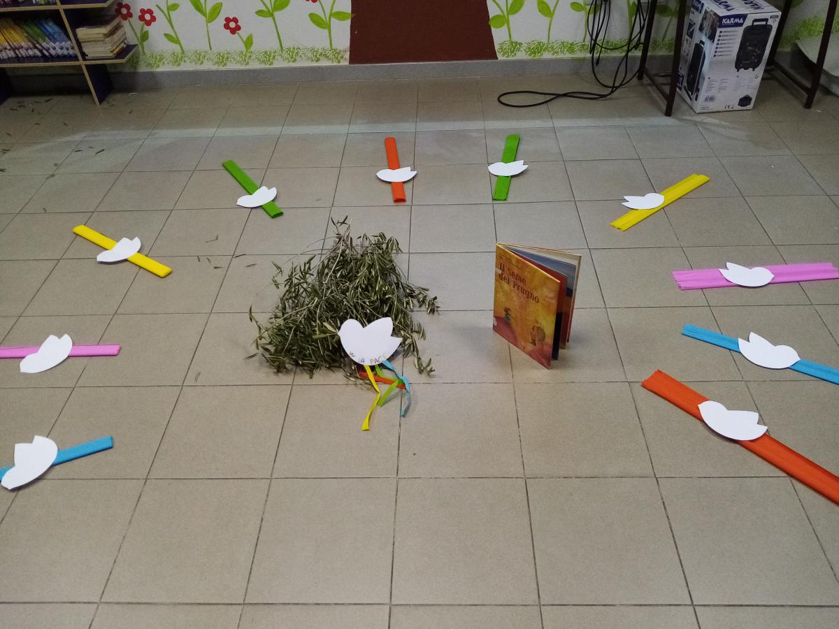 In un clima di riflessione e di condivisione, ogni bambino ha seguito il racconto proposto, ed ha poi lasciato la biblioteca portando con sè una colomba bianca e un rametto d'ulivo come impegno e volontà di Pace.